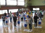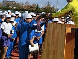 退所式を行い、市有バスで学校に戻りました。学校で到着式も行いました。