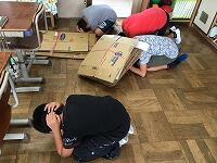 校庭を見ると、慌ててきょろきょろする子、遊具から離れ走ってくる子、校庭の中央でダンゴムシの姿勢をとる子とさまざまでしたが、倒れてくる物から離れ、頭を守ろうとしている姿が見られました。ただ、揺れているブランコの横を通り抜けたり、あわてて鉄棒から落ちそうになったり、まだまだどきっとすることもありました。訓練を積むことで、さらに課題も見えてきます。経験を積んで、自分の身をしっかり守れるようになってほしいと思います。