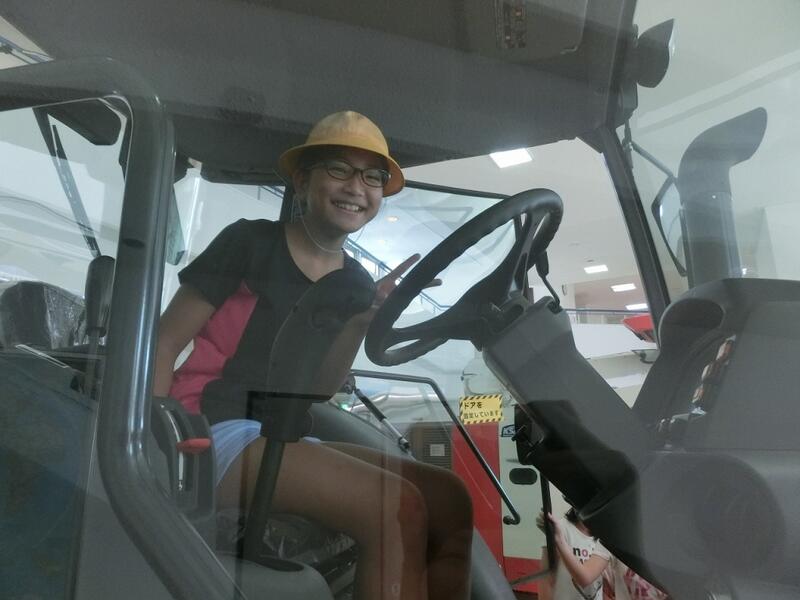 展示室には、田植え機やコンバインなどがあり実際に乗ることができました。