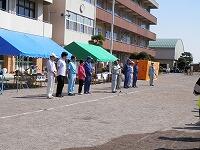 8時半に地震発生。9時ごろ、消防団の皆さんを先頭に、各自治会の皆さんが続々と学校に集まってきました。受付終了後、けが人の対応です。