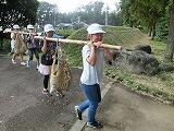 はじめに那須野が原博物館に行きました。昔の那須に住んでいた人の体験として、水運びともっこ担ぎを行いました。「こんな重い水を子どもが3キロ~5キロも歩いて運ぶなんて大変」「少しの距離でも肩が痛くなった」などと、昔の人の苦労を実感しました。また、DVDや博物館の展示を見て那須の歴史を学習しました。
