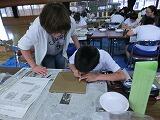 下絵を写したら、彫刻刀で削ります。4年生は初めての彫刻刀で苦戦していましたが、おうちの方と協力して仕上げることができました。