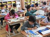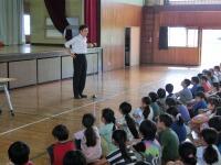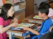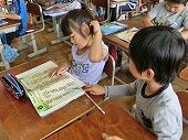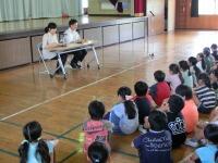「おこだでませんように」という絵本をご存知でしょうか?いつも怒られることになってしまう「ぼく」が、一生懸命考えて、七夕の短冊に「おこだで(られ)ませんように」と書くというお話です。この本を、校長先生と荻原先生で読み聞かせをしました。子どもたちは真剣に聞いていました。きっと、子どもたちの心の中に、「ぼく」と同じような思いがあるのかもしれません。私たち大人も考えさせられるお話でした。