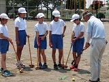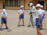 子どもたちは、初めてグランドゴルフを体験したようでしたが、おじいさんおばあさんに教えていただきながら楽しんでいました。