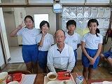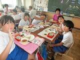 グランドゴルフを目一杯楽しんだ後は、給食を一緒に食べました。健康の秘訣を質問したり話をしたりしながら、楽しく過ごすことができました。