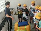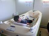 代表の子が実際に機械に乗って、利用者の方がどのようにお風呂に入っているのかを体験しました。