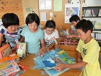 今年度から「図書館ボランティア」さんに活動していただいています。保護者の方に図書室の掲示物づくりを中心に行っていただいています。