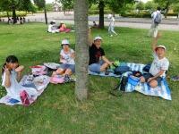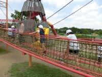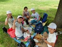 お昼は緑地公園で食べました。梅雨の時期ですが天気に恵まれ、仲良く楽しく食べることができました。食後は、遊具で思いっきり遊びました。