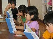 子どもたちは、実際にうづま荘で行われているズンドコ体操と嚥下(えんげ)体操を体験しました。