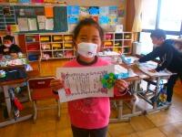 ポイントカードの片面が終わってスペシャルプレゼントをもらった児童です。