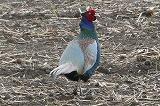 今朝、学校の近くの畑で、餌をついばむ立派な雄のキジと出会いました。