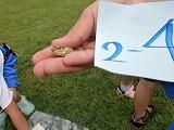 練習した後には、パス選手権!!一番早く15回パスをした親子がチャンピオンです!