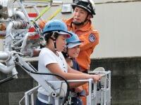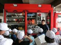 栃木市消防署では、初めにビデオを見て消防の仕事について学んだ後、実際に消防自動車や救急車を見せていただきました。また、通信指令センターの説明を聞いたり、代表で数名、はしご車に乗せてもらったりもしました。