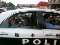 栃木警察署では、栃木県警がどのような仕事をしているかについてのDVDを見たり、学校で学習した時に疑問に感じていたことについて教えていただいたりしました。実際に警棒や手錠、楯などに触らせてもらった時には、みんな興奮した様子でした。また、パトカーにも乗せていただき、車の中の様子も分かりました。