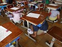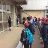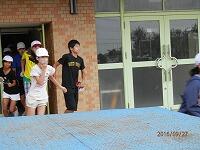 その後、家庭科室からの出火を想定し、避難経路を確認しながら担任の先生と共に校庭に避難しました。
