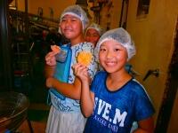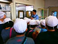 帽子をかぶり、おせんべい工場見学スタートです。機械のすぐ横を見学させていただきました。おせんべいは3日かかってできあがるのだそうです。おせんべいを乾燥させたり、ふくらませたりするところでは、「あっつ~い。」の声も。2枚もおせんべいを試食させていただいたうえに、おみやげまでいただきまして、ありがとうございました。