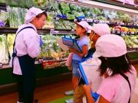 子どもたちは、店長さんのお話を真剣に聞き、スーパーマーケットで買い物をする人が多いわけをしっかりとメモしていました。