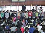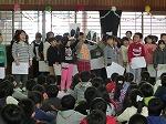 6年の担任2人も加わり、長渕剛の「とんぼ」を熱唱です。ギターは・・・もちろん校長先生です。三人の歌を、子どもたちも手拍子で盛り上げてくれました。