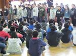 児童会主催で、「6年生を送る会」が開かれました。各学年の出し物と贈る言葉が披露され、6年生からはお礼の歌と下級生への言葉がありました。また、6年生へ、活動の写真や手作りのお守りなどのプレゼントが1年生から手渡されました。先生からも「未来へ」の歌をプレゼントしました。
