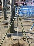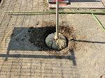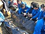 5年生は、じゃがいもを植え付けました。マルチをかけ、一人1個ずつ、カレーライスかポテトサラダか…、収穫に思いをはせてていねいに植えました。