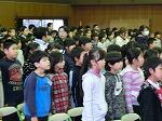 今週から卒業式の練習が始まりました.2時間目と3時間目の間に20分の時間をとっています。今日は、式の中で歌う歌を練習しました。6年生の歌声が模範となっています。下級生も頑張れ。