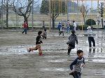 雨はあがったものの、校庭は水たまりだらけ。子どもたちは、それぞれの昼休みを過ごしています。