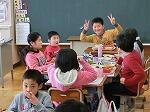 6年生は、下級生といっしょに給食を食べる「ふれあい給食」で、思いでづくりをしました。
