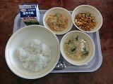 ごはん・牛乳・ジャージャン豆腐・やみつききゅうり・五目スープ