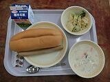 ホットドック(スライスコッペパン/フランクフルト/ケチャップ)・牛乳・ブロッコリーとキャベツのサラダ・大豆のクリームスープ