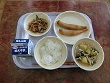 ごはん・牛乳・ししゃもフライ・くきわかめ入りきんぴら・かみかみみそ汁