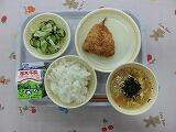 ごはん・牛乳・あじフライ・こぶづけ・かみなり汁(汁/小袋のり)