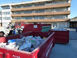 1月25日(日)はPTAリサイクル品回収日でした。古新聞・段ボール・古雑誌・アルミ缶・エコキャップを積んだ車が各地区より来ました。みんなで協力して回収業者の車両等に素早く積み込みました。リサイクル品回収にご協力いただいた皆様ありがとうございました。今回の収益につきましては後日報告いたします。