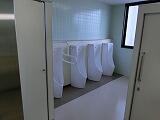 中に入ると室内の照明が自動点灯し明るくなります。男子小便器は用が終わると自動で水が流れます。また、手洗いも手をかざすと水が出てきます。