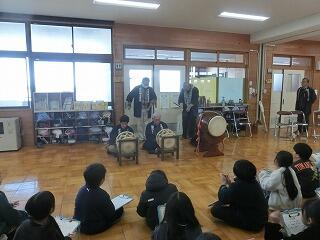 3年生は3学期の総合的な学習の時間に「地域の文化にふれよう」をテーマに学習を進めています。本日は野中町お囃子保存会の皆様にご協力を得て、お囃子体験活動を行いました。まず、保存会の方々のお囃子演奏を聴きました。楽器の種類や演奏方法などメモを取りながら聴きました。次に児童たちがお囃子演奏に使われる太鼓やかねの体験活動を行いました。保存会の方のアドバイスを聞いて進めていました。児童は体験を通して地域の文化にふれることができました。保存会の皆様ご協力ありがとうございました。