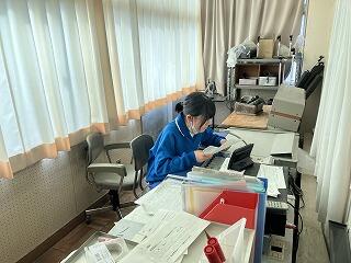 低学年の給食ワゴンを運んだり、給食チェックファイルを回収したりしています。