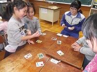 5校時は、各学年に12名くらいずつ入ってもらい、それぞれの学年の児童と交流しました。1年生は生活科でカルタを一緒にしました。5年生は、体育でバスケット型ゲームです。その他の学年は、算数で交流しました。校内でかけ算で表せるものを中学生と一緒に探して歩いた2年生、コンパスの使い方を教えてもらった3年生、いとひばの木の高さを工夫して図った4年生、計算問題の解き方を教えてもらった6年生。中学生は、とても優しく子どもたちに接してくれ、子どもたちはいつも以上に、意欲的に楽しく学習に取り組めました。