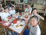 グランドゴルフを目一杯楽しんだ後は、給食を一緒に食べました。健康の秘訣を質問したり話をしたりしながら、楽しく過ごすことができました。