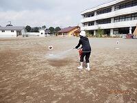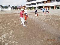 そして、消火器を使っての初期消火の訓練です。先生方と6年生の代表児童が行いました。