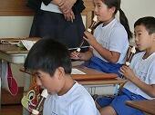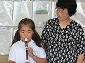 リコーダーで、「おはよう」「こんにちは」「サッカー」などの言葉を表す学習でした。「シ」の音でリズム良く、きれいな音を出す工夫をしました。