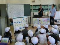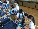 実際に、子どもたちが学校で吐いてしまった時を想定し、身支度、消毒液のつくりかた、ふき方等やってみました。一つ一つ気を付けないと、流行に繋がってしまうことが分かりました。