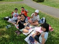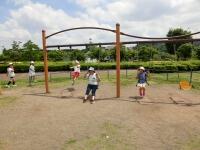 お昼は緑地公園で食べました。梅雨の時期ですが天気に恵まれ、仲良く楽しく食べることができました。食後は、遊具で思いっきり遊びました。
