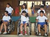 まず最初に、自力で狭い道を通って段差を上る体験をしました。段差はあまり高くないものでしたが、上ることができない児童がたくさんいて、車いすの大変さに気付くことができました。
