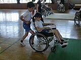 次に、介助者をつけて段差の上り方や車いすを押す体験をしました。