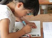ことばの学習では、「ねっこ」や「まっくら」のようなつまる音を正しく読めるように、MIM(ミム)という学習方法を使って、手を叩きながら言葉を確認していきました。「パイナップル」のような少し長い言葉は難しかったようですが、がんばっていました。