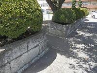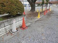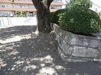 校庭と東駐車場の境にあった大谷石作りの花壇が、桜の根に押され傾いていました。