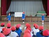 栃木県サッカー協会キッズ委員会の稲垣さん、齊藤さんが、1・2年生にサッカー教室を行ってくださいました。悪天候のため、体育館での授業となりましたが、充実した45分間となりました。グループを作り、手をつなぎながらボールを蹴ったり、声を掛け合いながらミニゲームを行ったり、楽しみながらも、自分たちで考え、協力する大切さを学ぶことができました。