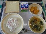 <今日の給食> 食パン・フルーツクリーム・牛乳・チキンナゲット・ジュリエンヌスープ