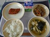 <今日の給食> ご飯・牛乳・鶏肉のごまだれ焼き・小松菜の磯か和え・味噌けんちん汁