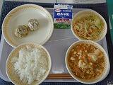 <今日の給食> ご飯・牛乳・麻婆豆腐・にらまんじゅう・パンサンスー