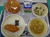 <今日の給食> はちみつパン・牛乳・白身魚フライ・ソース・ブロッコリーサラダ・野菜のカレースープ